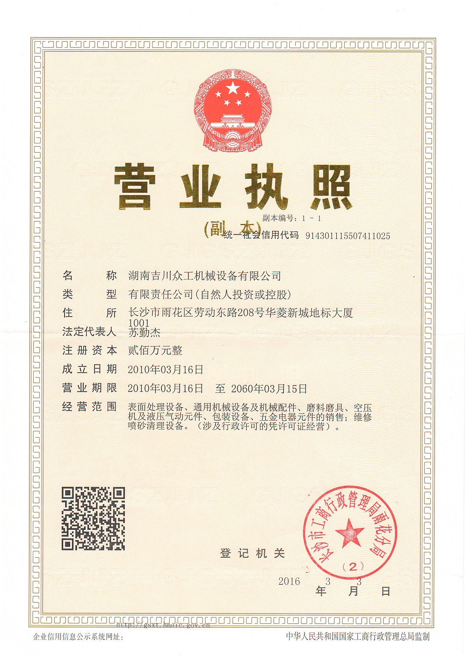 湖南吉川眾工機械設備有限公司營(yíng)業(yè)執照